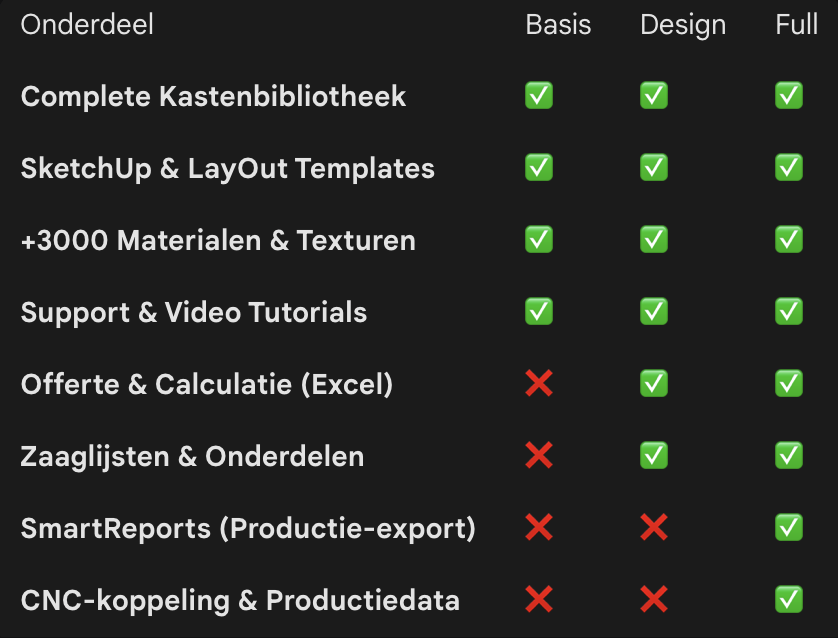 Please note: To generate cutting lists and quotations, the Full version of CabN8 is required. Excel is a prerequisite for this, and you must use a Windows machine. Below, we briefly explain the different license types.