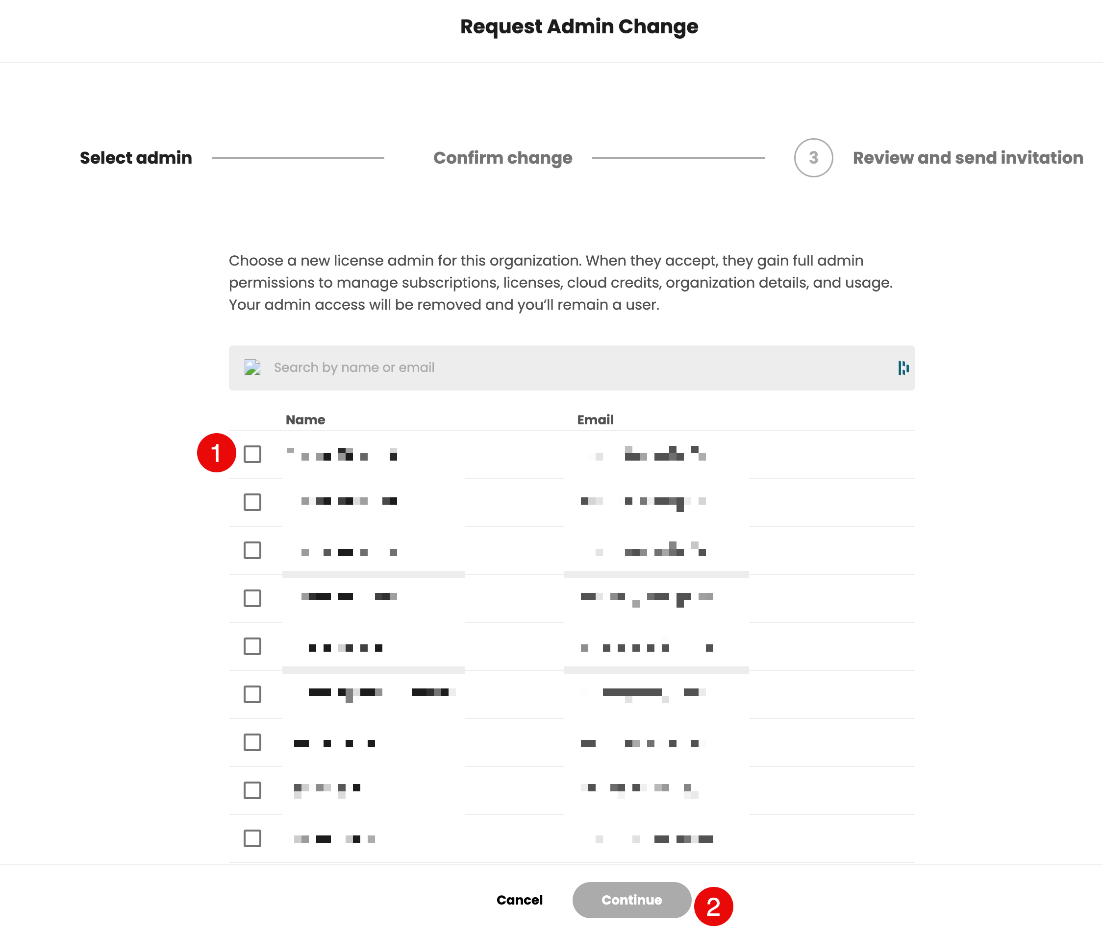 - The new administrator will receive an email with the subject line “You have been invited to become a license administrator...”