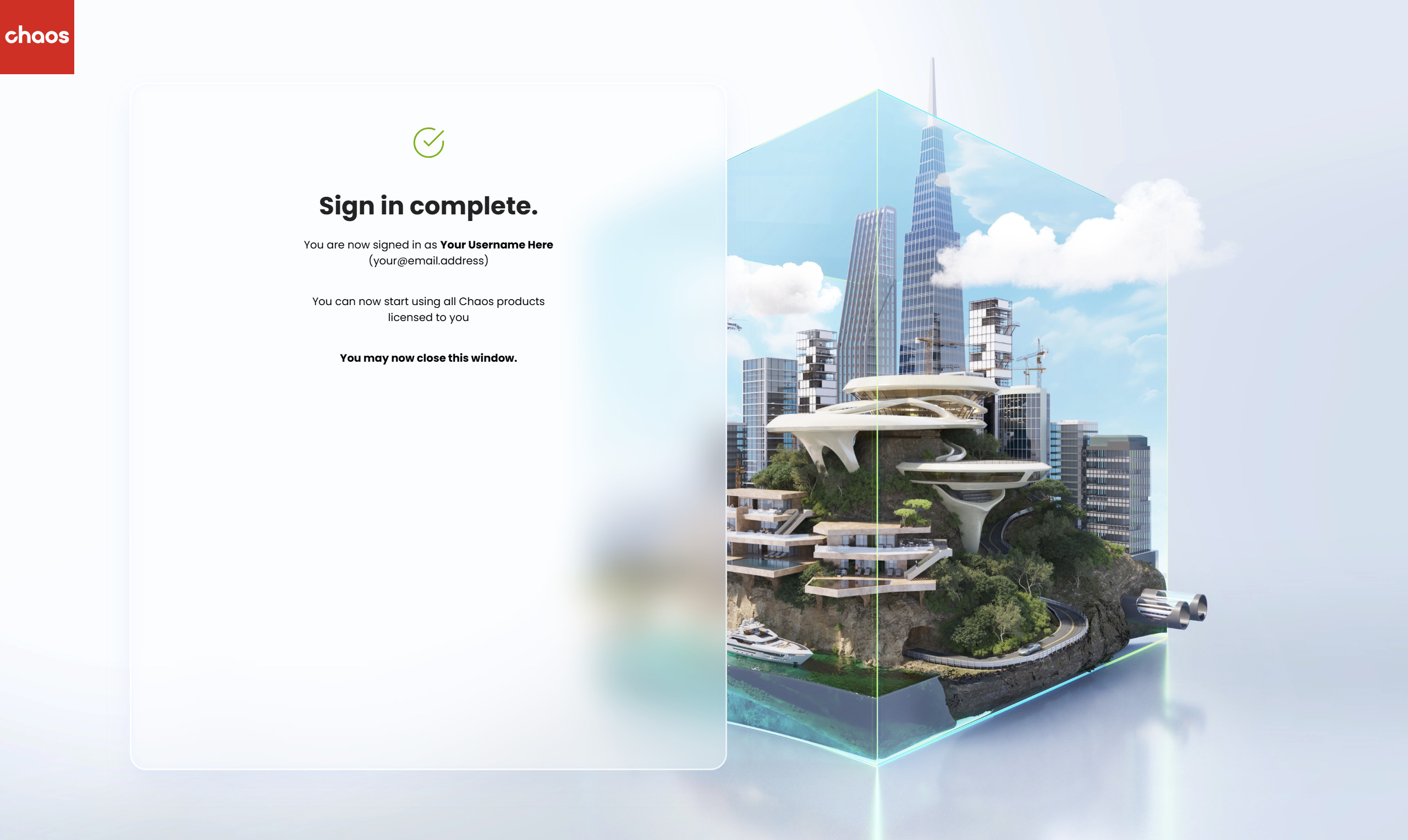 Using V-Ray requires a valid license and an account. Please sign in to your Chaos account.