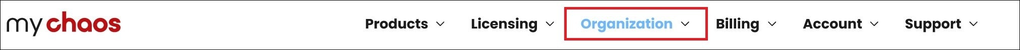 1. Log in op my.chaos.com en ga naar het tabblad Organization (Organisatie) in de werkbalk.