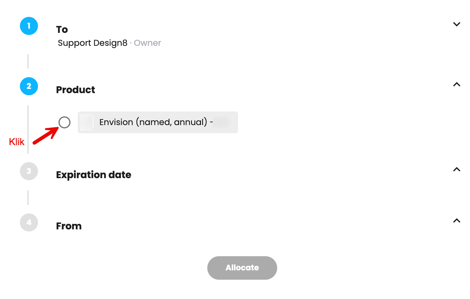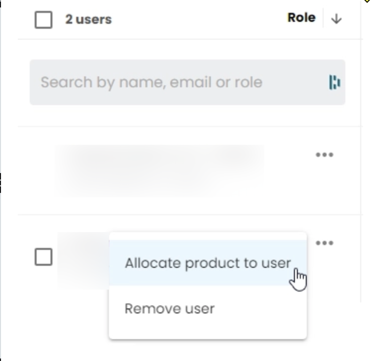 Klik op de drie puntjes om een product toe te wijzen aan een Gebruiker.