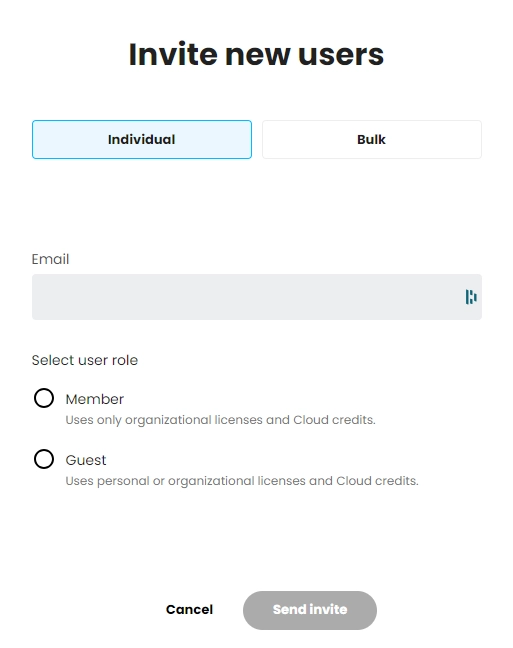 • Bulk - Meerdere gebruikers tegelijk om een csv bestand te uploaden.